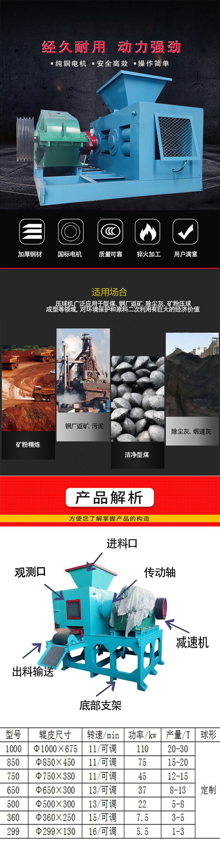 鋼渣壓球機(jī)主要有色和黑色金屬礦粉的制球造塊,直接進(jìn)爐冶煉,提高附加值。凡是冶金行業(yè)廢料、輔料需上爐的,都需要壓球機(jī)來(lái)完成,比如:鋼渣、除塵灰、池泥、氧化皮、鋼渣、鐵精粉、鋁灰粉、硅錳礦粉等。經(jīng)壓球機(jī)制作成型后的物料,節(jié)能環(huán)保,便于運(yùn)輸,提高了對(duì)廢料的利用率,具有良好的經(jīng)濟(jì)效益和社會(huì)效益。